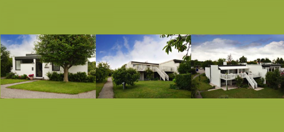 De 33 beboelseshuse er fra starten ens – 156 m2 – og bygget på en 20.000 m2 grund, der skråner mod syd.
